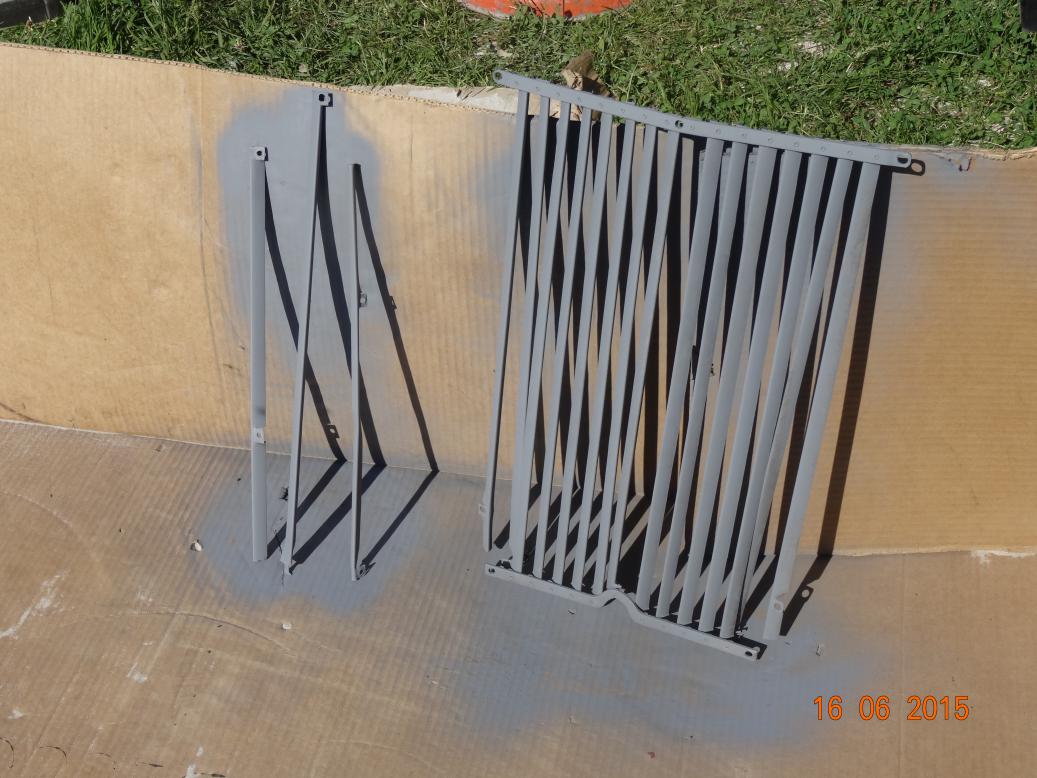Up at 0645, breakfast and out by 0725 to Chateaubriant to get 4 more bags of sand. Then all the way back and on to Avrille, which is near Angers to get the paint, 2 US quarts and an aerosol, brushes for cleaning oilways in the engine, fuel tank cleaning and sealing kit, 2 tins of paint stripper, a gallon of rust remover and an aerosol of VHT silver. 400€ later I was on my way back. Got back at 1045, changed and started work. I've painted the chassis both axles, wing stays, shock absorbers and lots of brackets etc. We're out tomorrow and I'll give the stuff I've painted today a final coat of the correct colour black on Thursday morning and cut grass in the afternoon. Shoud be able to start rebuilding on Friday.