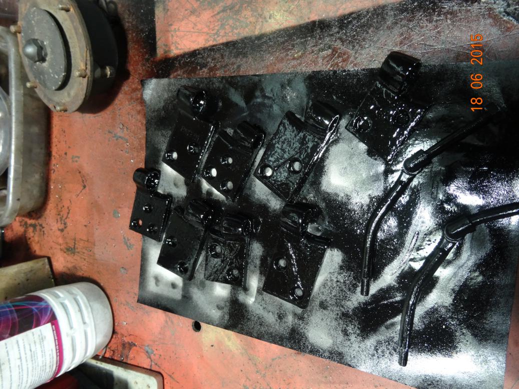 Painted hinges with new balls, screws, locktabs and nuts. They are going of the the chap making the tub and I'll paint them again when they get back.