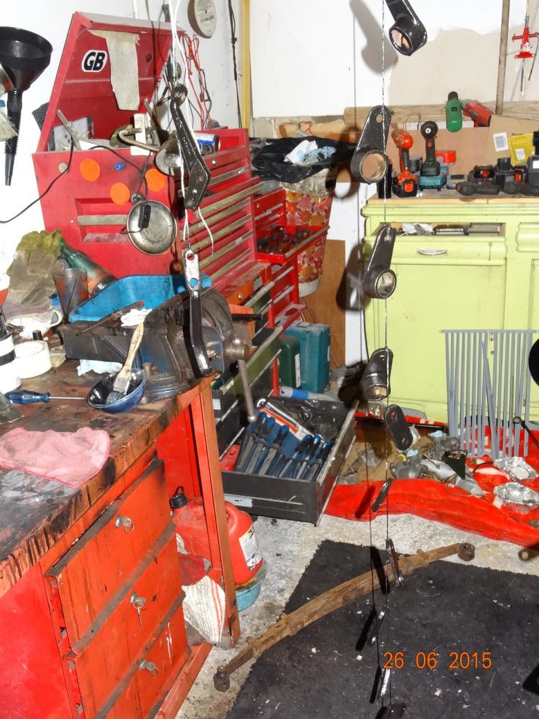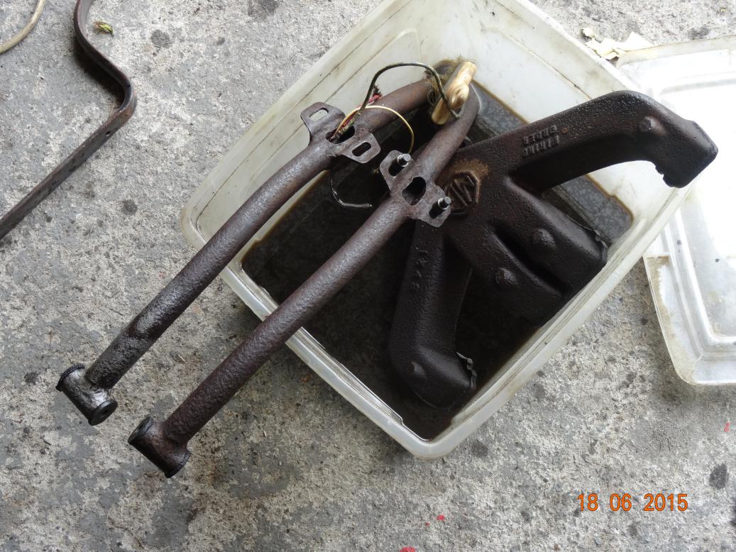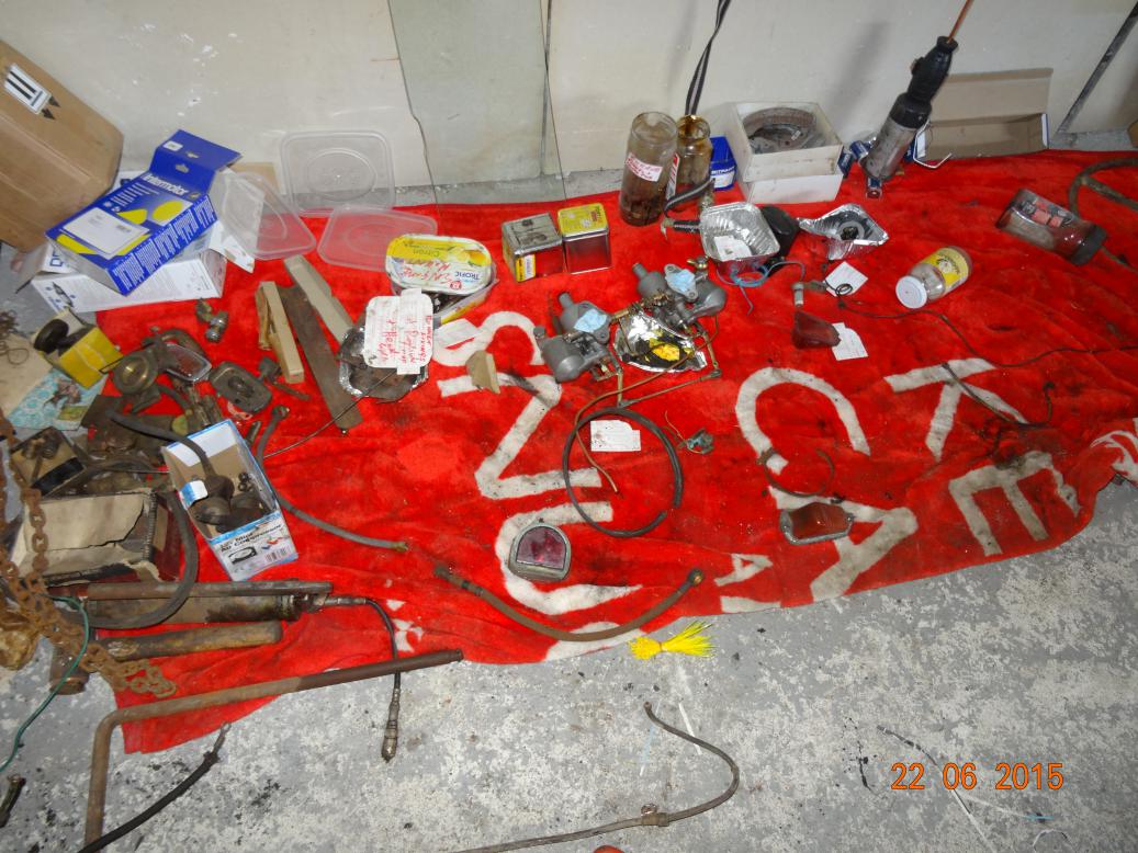 Started about 1000 and got the sandblaster up and running. Spent the rest of the day sandblasting and on the wire wheel. Nearly finished the lot and nearly run out of sand. I will get more sand tomorrow morning and then go and collect the long awaited paint. I'm also going to ask Julien if he knows where to get the chrome and paint done as he deals with bodyshops who renovate old cars. He's Frosts French agent.
