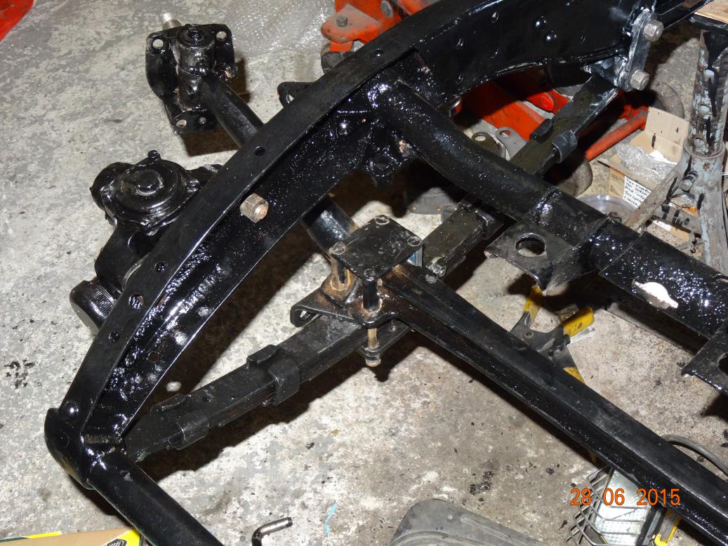 Not sure what the law's called, maybe sods law, but having spent 3 weeks sandblasting and painting all the parts, the first parts I go to fit are not painted! I've put all the spring hangers under the chassis at each corner they go and missed painting them. Idiot!!!!