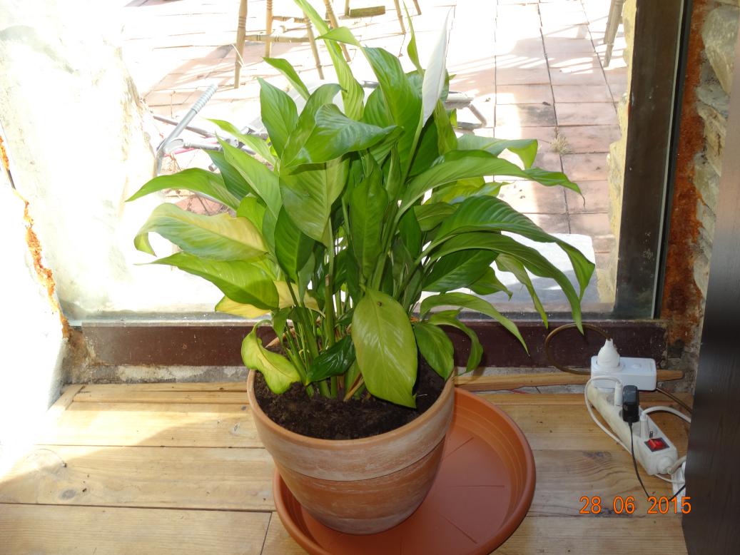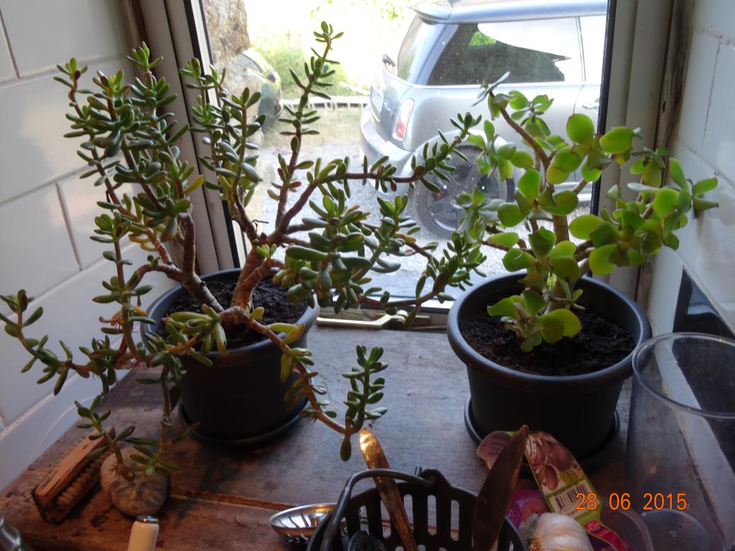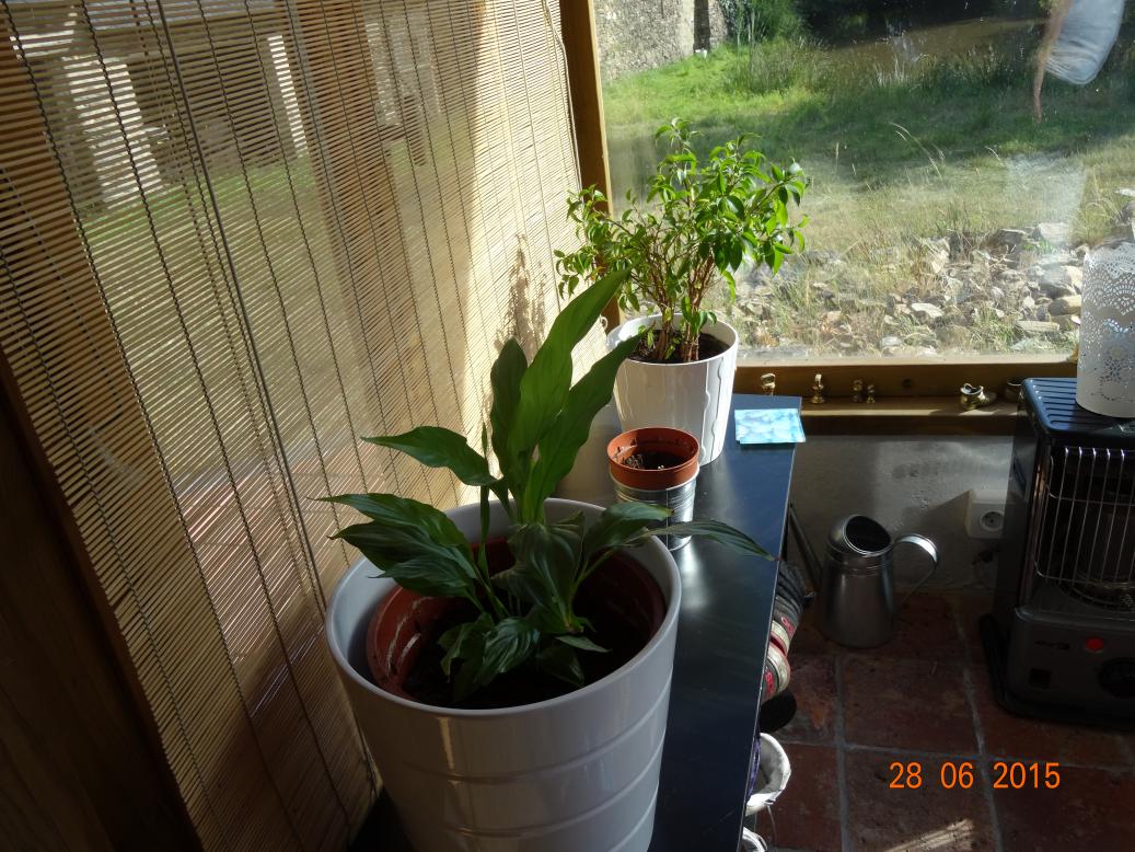 Two plants that needed re-poting. The one nearest the camera was bought by some guests who she did some washing for. Maybe i should say she put their clothes in our washing machine. They bought her this plant as a thank you.
