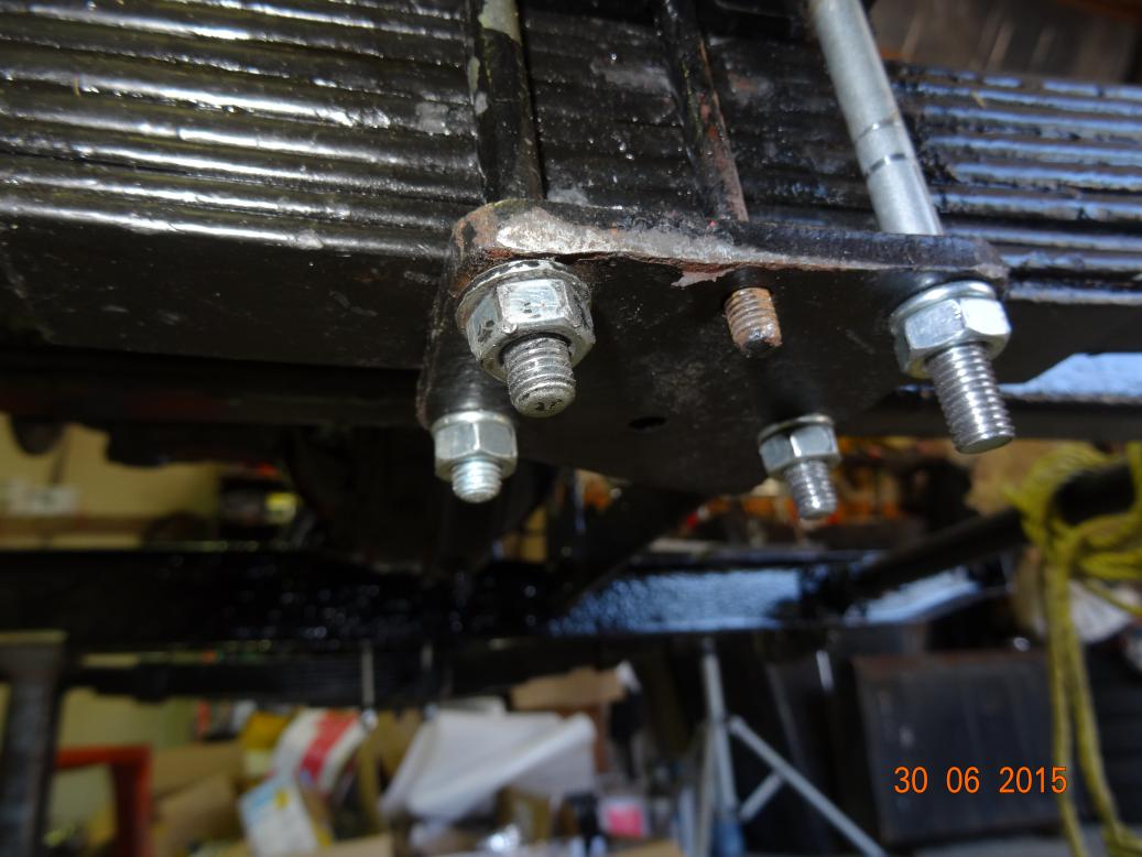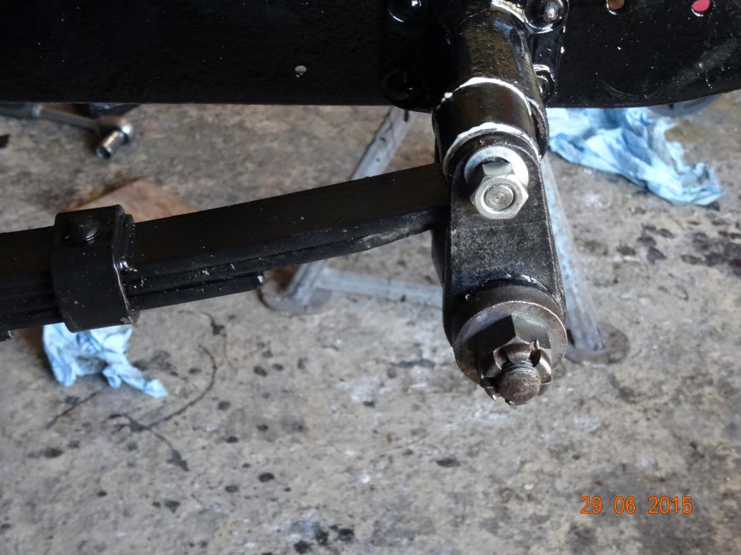 Rear spring on but not fully tightened. I'll tighten and split pin the nuts in the morning and do the other side. Then to fit the axle to the spring.