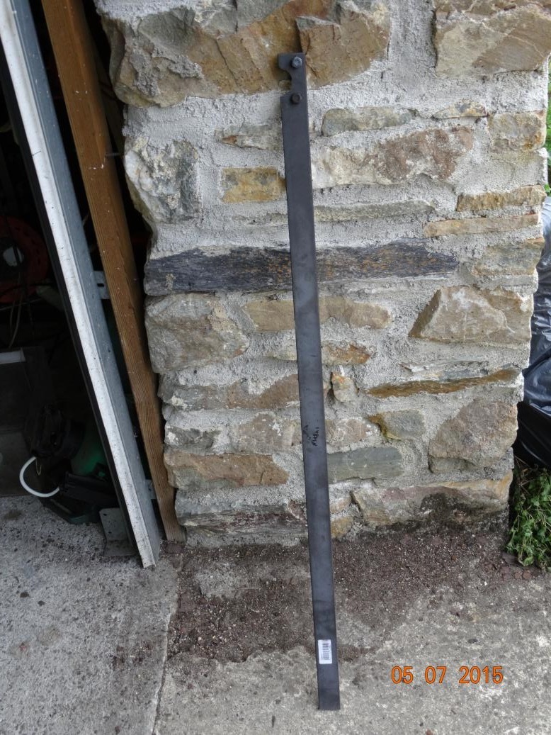22-May-15 Started at 0800 and took some pictures of the compressor and other stuff. Then worked on the chassis and finished at 1230. Had lunch after which I went to Chateaubriant (20 kms) for more sand and to get a steel bar to make a tool to hold the diff pinion whilst I undid the pinion nut. The Tabc community have a Yahoo group email system. I asked how to get the pinion nut undone and a dozen or more people told me. Having been told I remembered. When I got back I started on the rear axle casing. The amount of air the sandblaster uses means the tank is below replenish pressure in less than a minute and then takes about 3 minutes to get back to 10 bar. So, whilst it was pumping up after I had almost emptied the tank, I made the tool for the diff pinion and got the nut undone. Then cleared away, covered the chassis and tools and put the axle casing inside. Had dinner and now doing this. Which, whilst I’m on about this can I tell you that I’m about to go to Seattle and kill a Microsoft employee. As you may know an MS download of Office 2010 destroyed my existing copy of Office losing all me emails and Front Page, which I use to build this web site. I’m now using the new Word 2013. However I resize the pictures but next time I open the document they have reverted to the previous size which is too large. Then I can’t find todays pictures where I put them and get myself in a right tangle resulting in having 4 of everything on my web site file (not the server, my file on my machine. It will take me a few hours to delete the copies, but it’ll have to wait. OK, pictures. I’ll post some of the finished chassis tomorrow. The new compressor, nice, isn’t it. The gauges as they were this morning from overnight with the compressor switched off. I’m pleased that it doesn’t leak too much (the pipes, not the compressor). The N/S/R shock absorber bracket that is broken. Close inspection shows that someone has repaired it but not very well. I asked Lynne to find one and between the Tabc community and Lynne we have on it’s way. The good one. Sand, I’ve now had 6 bags. There is one new one unopened and about of a bag of hovered up sand to re-use. The axle, nearly done. It’s a case of scraping and sandblasting. A long and messy process, but I think it’s worthwhile. I could just paint over it with the POR-15 paint but I’de prefer it clean and rust free. The other side and my feet J
