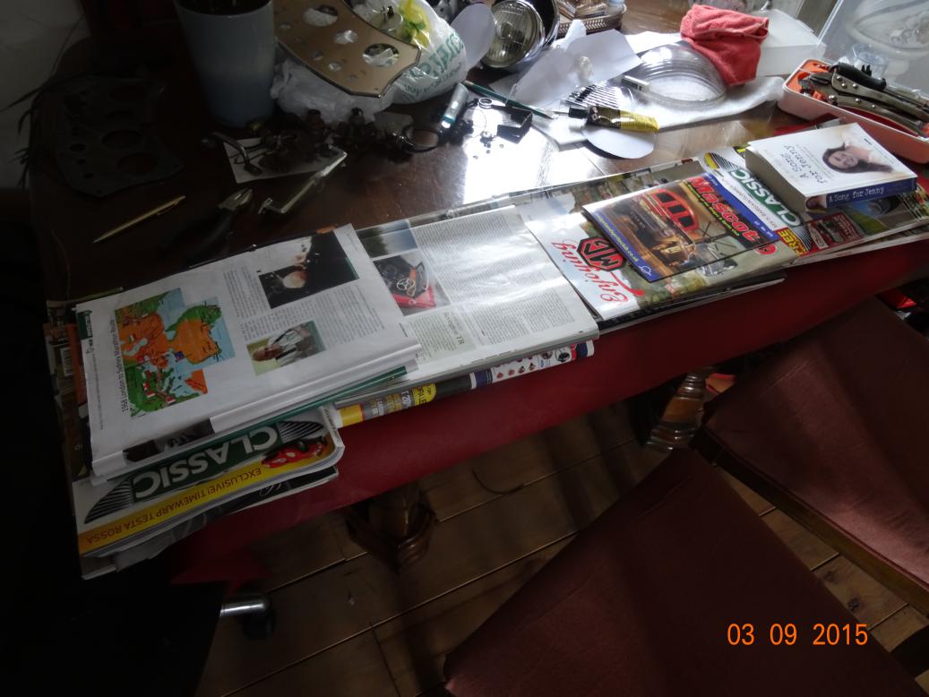 All the new and re-chromed parts laid out. I may spend less time looking for things now, although I woiuldn't put money on it.
