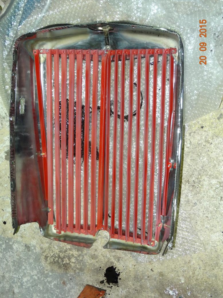 The inside of the radiator shell. The slats are not fixed yet, the nuts are probably at the bodyshop.