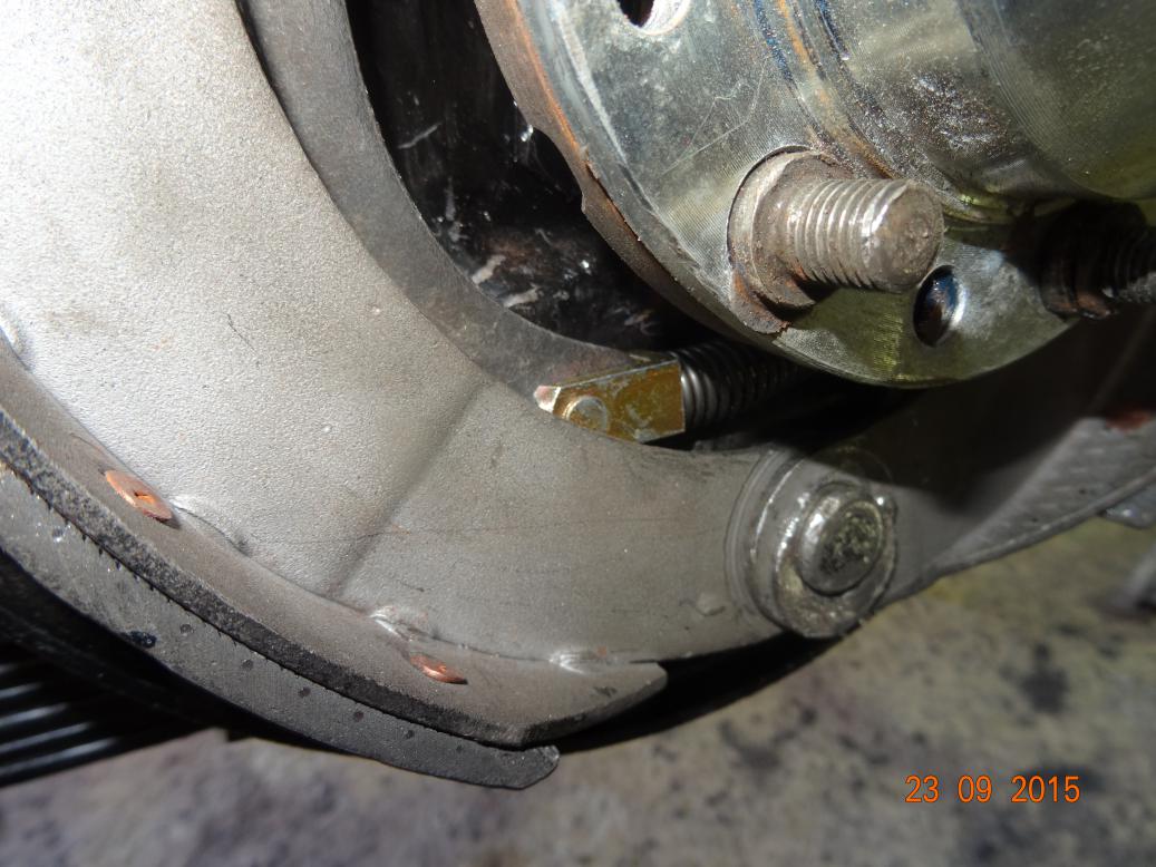 The handbrake cable arrived after lunch. So, I retired to the workshop and tried to fit it. I struggled for an hour. As I got one part of the shoe on the other fell off. It didn't help that I can only use one hand. When Lynne came back from shopping i asked for her help and managed to get the shoes on. However the drum would not go on as the shoes would not close up. I took the N/S drum off and could see that O/S cable wasn't fully retracting. I used a crow bar to lever the expander back and then the drum went on, well almost. I had to use the hub nuts to draw it fully on and now the wheel will not turn. I'll return to this on Friday. Tomorrow I'm getring a new exhaust on the Mini.