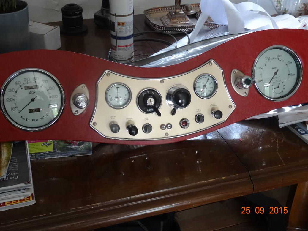 The completed dash with chrome surround and grab handle.
