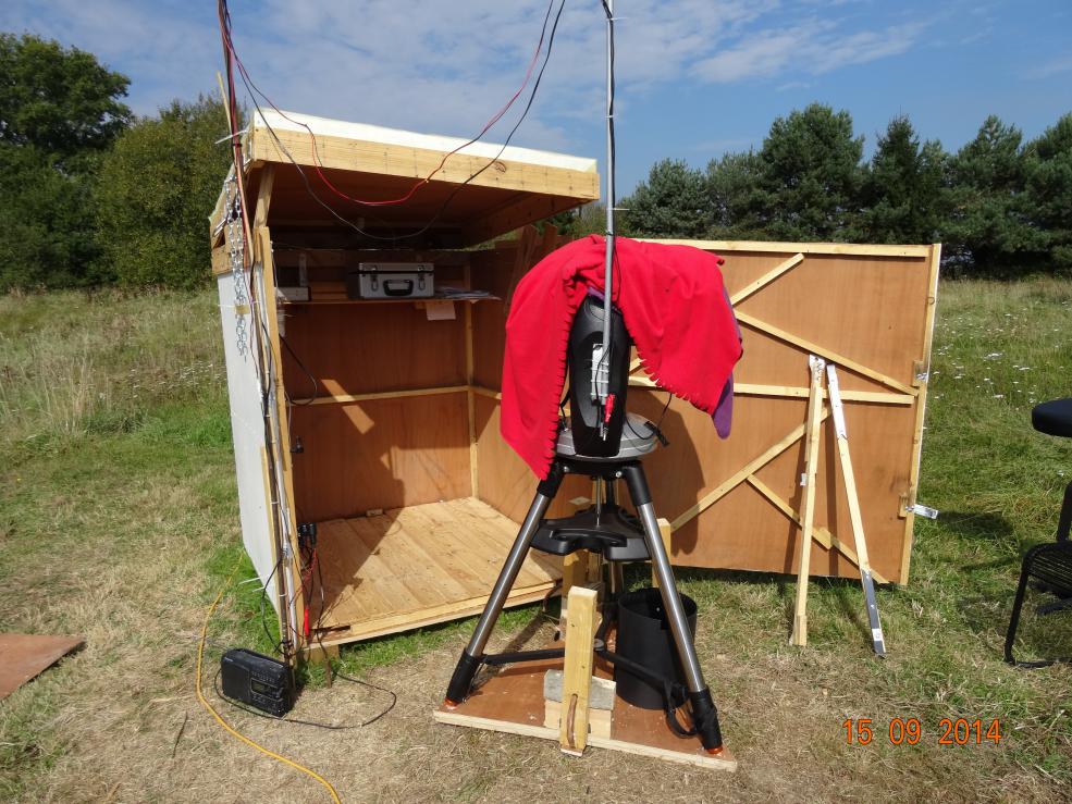 I have fixed up the 12v cigar lighter power lead to a battery in the observatory which is permanently connected to a battery conditioner. We also have a small heater for the cold nights - don't want our little baby getting cold.