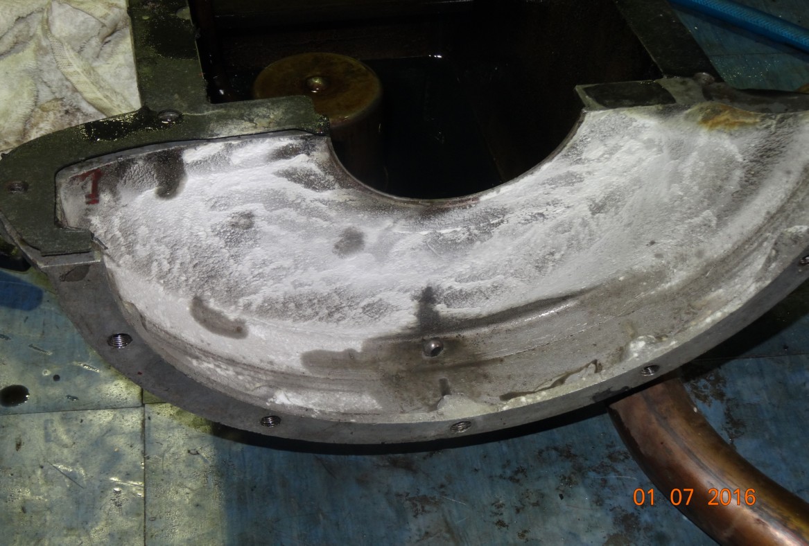The lower half of the retaining housing with two thick beads of silicon gasket maker.