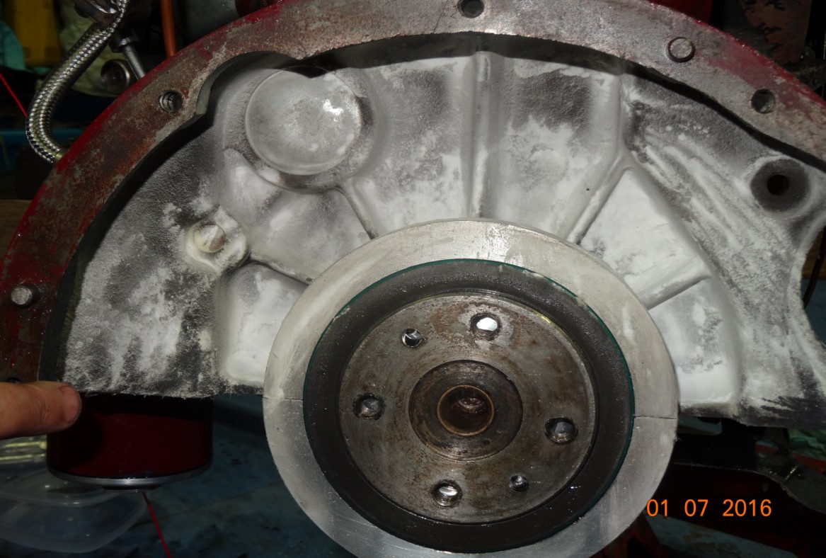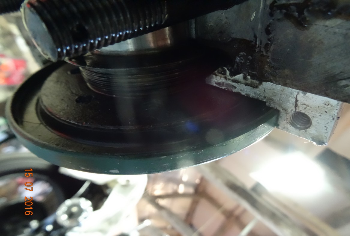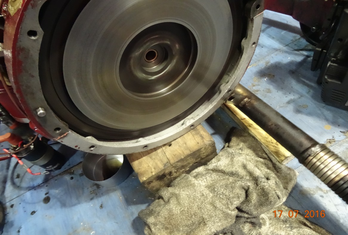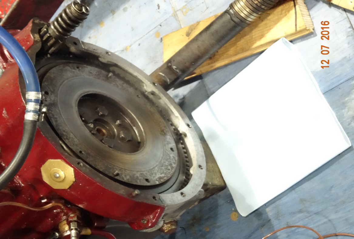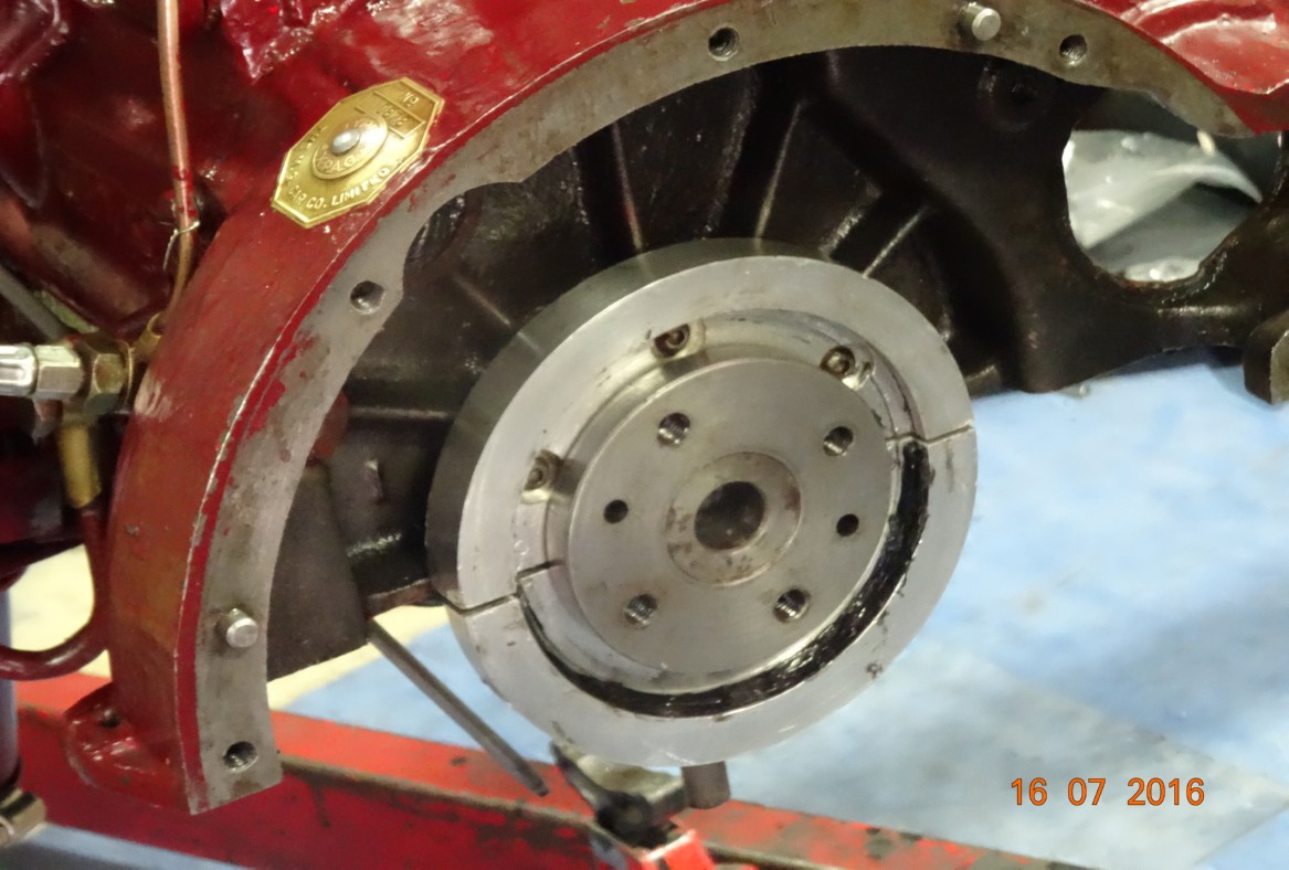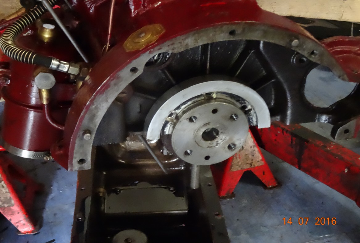 Clutch on, whilst I waited for the engine to cool for the third run. You can just see the end of the angle iron locking plate.