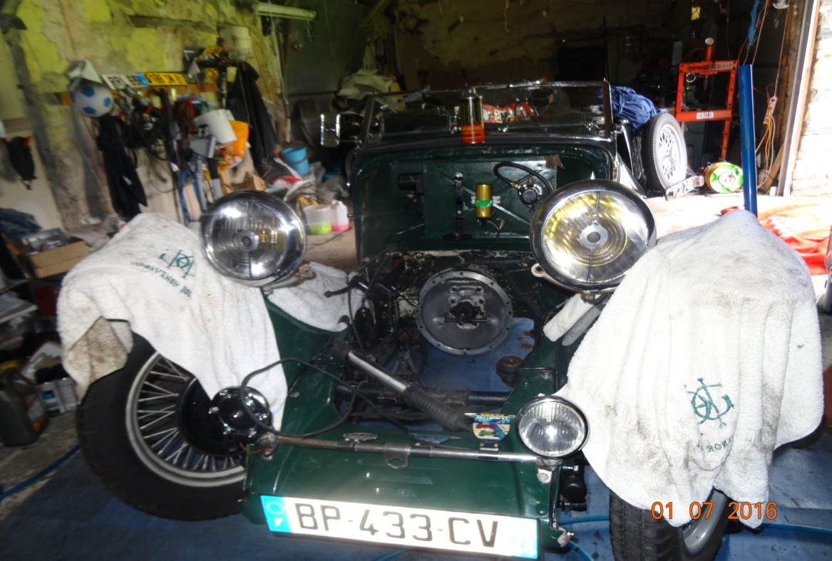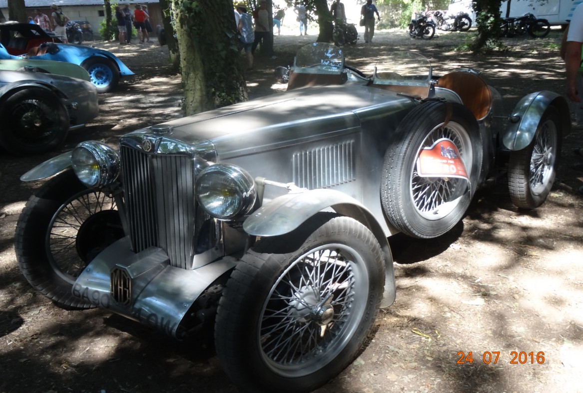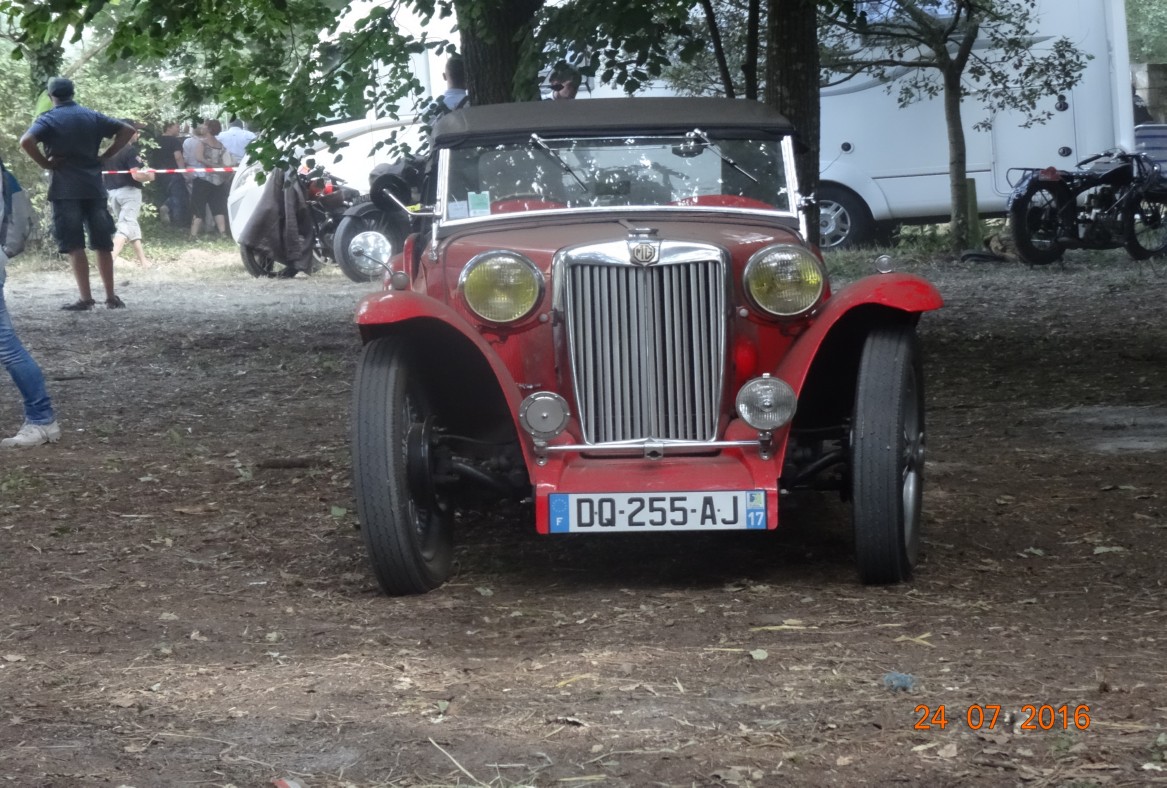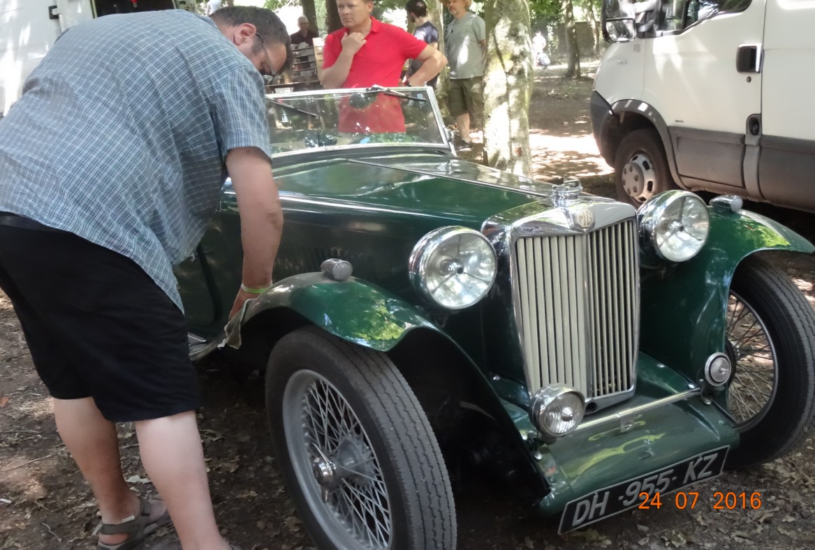 At 0830, Mike (staying here this week) and I leave in the TC for Puys Notre Dame. Where? It's a small village south of Angers which has a "old" car festival every year. This year they extendsed it to three days. I couldn't go on FRiday as I had to be in the hospital by 1600, Saturday and we had two couples arriving, so today was it. We went by country roads to avoid the motorways. It was a bit of a torturous route andit didn't help that the road numbers didn't agree with those on the map. It took us three hours to get there. We couldn't get to the centre of the village where all the cars and bikes were as there was a bike "race" going on and the track is around the centre so the access roads are closed. We parked up and weent for lunch. Good food and after we wnet back. The bikes were still going around but at 1530 we got in. Parked up with all the Morgans, mainly three wheelers and walked through to the MG's and others. Here are some pictures, if I've got the models wrong let me know. We left at 1700 and drove home via the motorways and dual carriagways and got home at 1700. The engine is still leak free but it was boiling by the time we arrived. However it was very hot, must have been over 30c. The car ran very well but the steering isn't right so I'm seeking advice. I'll check the ignition timing when I get time, tomorrow I'm due to start the Mini.