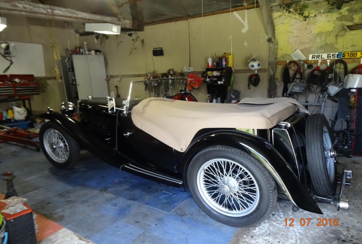 Then went to the bodyshop to collect my new LED work torch. Had lunch when I got back and then changed into working clothes and did more work on the TC. I tested all the dynamo circuit and it would appear it is charging, then that it isn't. I did get a reading from the dynamo but not at the regulator. I'm going to get Jean-Luc at the bodyshop to look at it on Monday. I've forgotten about dynamo's, it's fifty years since I worked on one. Then I had to sort the carb spindle out. The front carb throttle was sticking. Turned out to be the fast idle lever so I pulled it down and it was fine. I'll never use it so it doesn't matter that it won't work. Having done that I adjusted the carbs. Then fitted two lift-the-dot studs and clips to the tonneau so it will fold down behind the seat and not rise with the wind and obstruct the rear view mirror. Final job was to fit the new choke cable. I had to take the dash out to get the old cable off and new one in. Get the new cable through the bulkhead with Lynne's help as she held a light in front of the hole the cable goes through. I then knocked some bits off the tool box top. I heard something fall and hit the chassis. I'm sure it was the choke ferrule. I searched and searched but couldn't find it. Spent twenty minutes looking for it. I had to give up as we were going out to dinner with our guests in the gite. I tidied up and put the lights out. As I walked past the car to go in and have a shower I noticed the mole grips on the floor, I picked them up and...... you know what comes next, don't you. Yes in the jaws of the mole grips was the ferrule I'd just spent twenty minutes looking for. Only one description fits me and you all know what it is.
