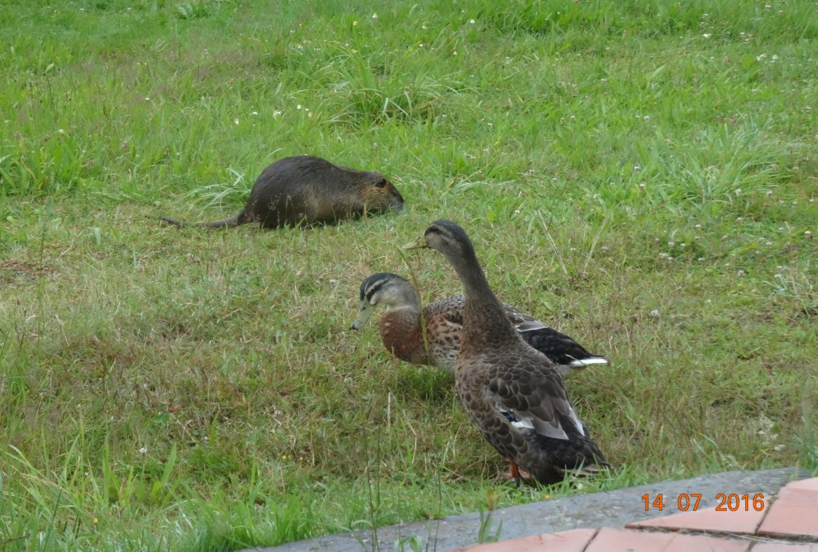 Or maybe they were guarding the Coypu. Please note that I've opened the door and stood outside to get this picture and they haven't moved. If a stranger did the same they would scurry back to the pond for cover.