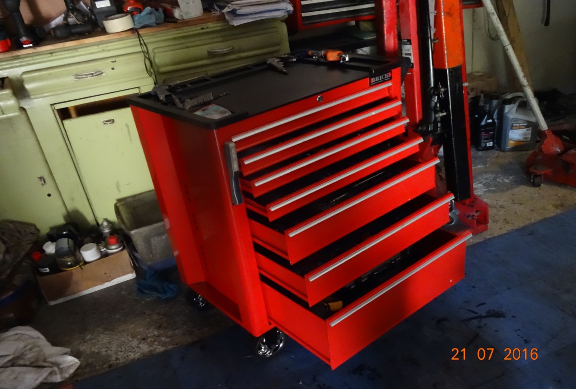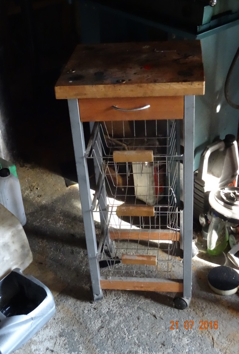 I bought a mobile tool box at Casterama. Lynne had said that I should use the old kitchen trolly thing but the tools kept faling through the wire baskets and if I pulled a draw out the whole thing tipped ove. So we did a proper job.