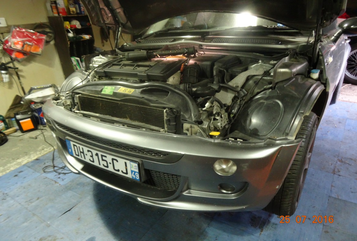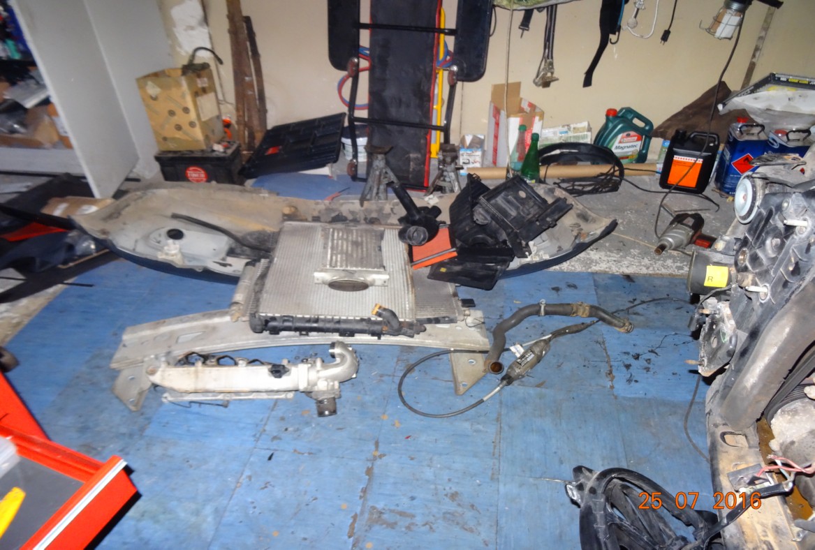 Got to the bodyshop at 0750 and when Jean-Luc arrived I was surprised to see the Caterham fully built. I expected to have to fit the wings, seats and dash myself but they had rebuilt it. That just left me to refit the four downpipes (4 nuts each pipe), the silencer, the rad and the engine mountings. Got it finished by 1130. Went home in the TC and had lunch after which Lynne took me back to collect the Caterham. Started it up and had to adjust the very loose fan belt (squeling) and then noticed oil dripping. The pipe from the engine to the oil pressure gauge is leaking at the union on the block. I was so tired I asked Jean-Luc if he could get it off, cut the end off and refit the plastic pipe to the olive. I then went to pay the bill which was quoted at 1500€. I nearly fainted when presented with a bill for 5998.29€ I argued it down by 1200€ but still a shock.
