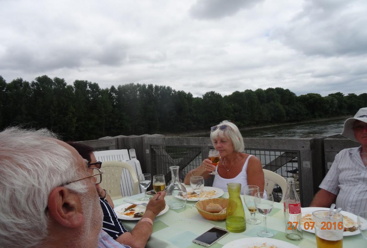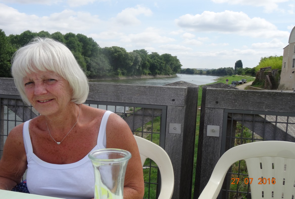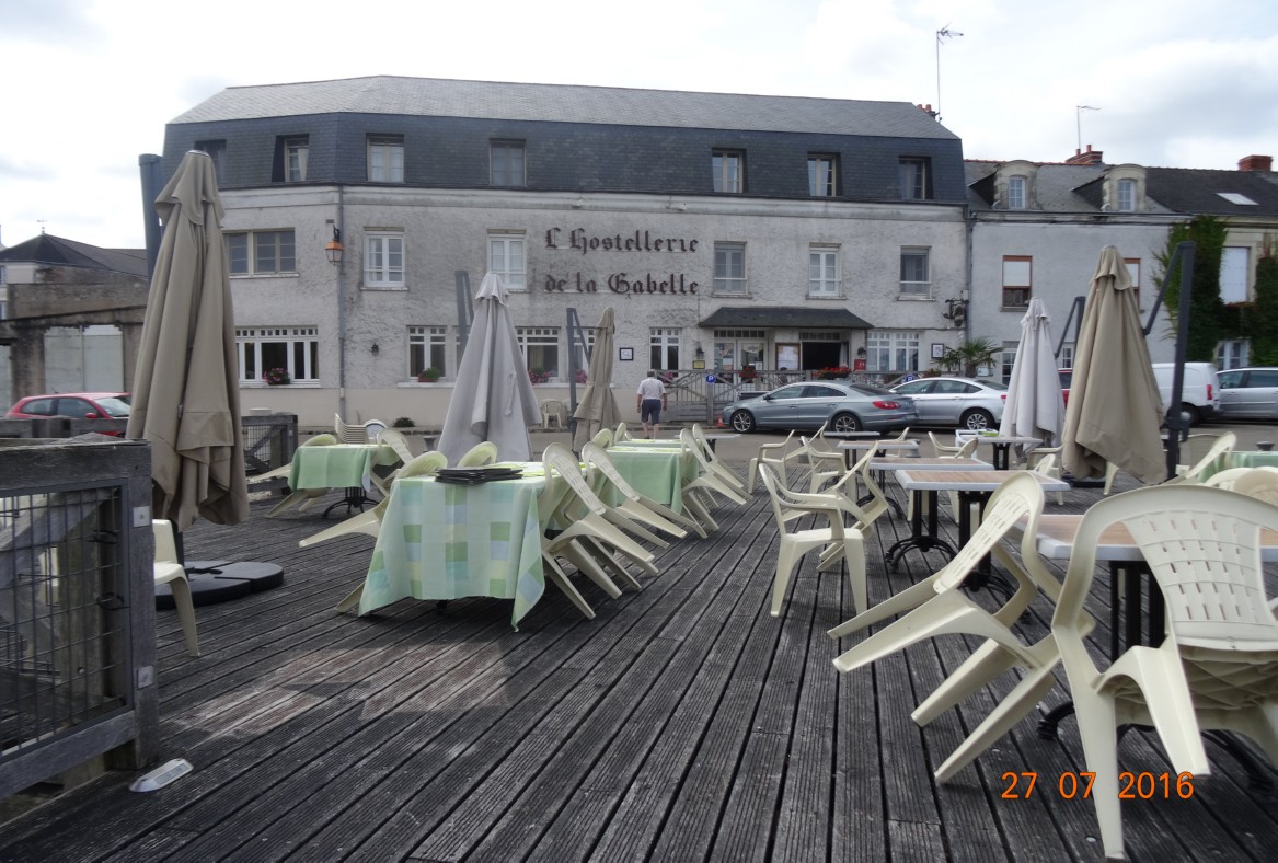 Started the morning by crawling under the car looking for the missing LED lamp. No luck, I've lost it. We went out at 1100 to a restaurant on a jetty over the River Loire. Got there at 1215 and was shown a table. (I mean we were seated, I know what a table looks like). Then about 20 people turned up on bikes and flooded the place. They were Belgians on a cycling tour. The staff were overwhelmed so we told them we weren't in a hurry. Left at 1530, great day.