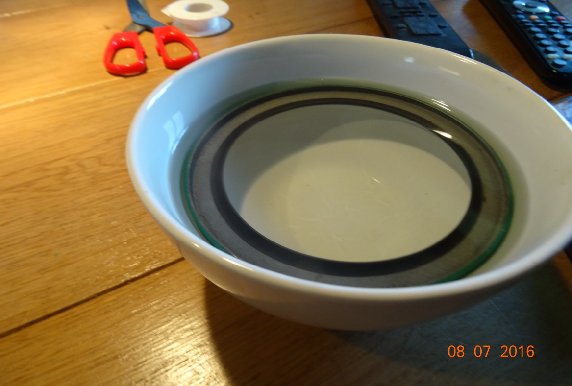 The seal being “boiled” in hot water. The open side, the side that faces the engine is uppermost.