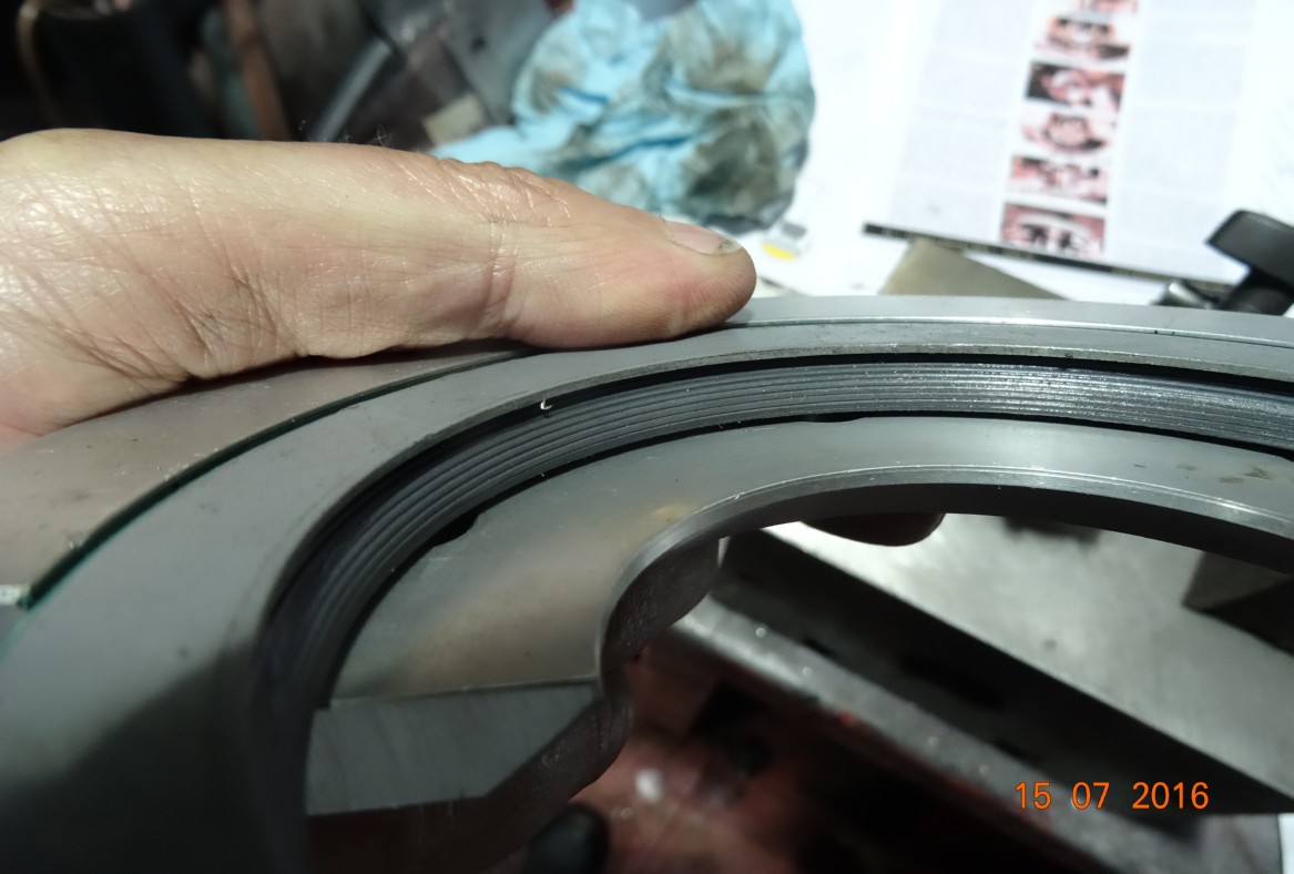 The groove being cut in the flywheel. It is, in this case, 0.060” deep and slightly wider than the seal.