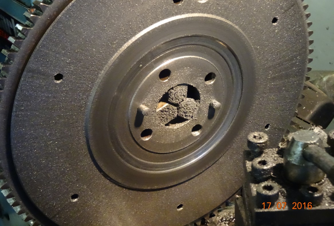 A decision has to be made. Do I remove the crank and pack the housing backwards 0.045” or do I make up seal faced sized gaskets to pack the housing so the seal is moved back the required amount? More measuring and I realise the inside face of the flywheel will need cutting back to clear the housing when it’s moved back. On this basis I decide not to remove the crank and move the housing back but to pack the seal housing and move the seal back leaving the housing where it is. This means that I have to cut the flywheel back by the diameter of the seal, not the larger diameter of the housing.